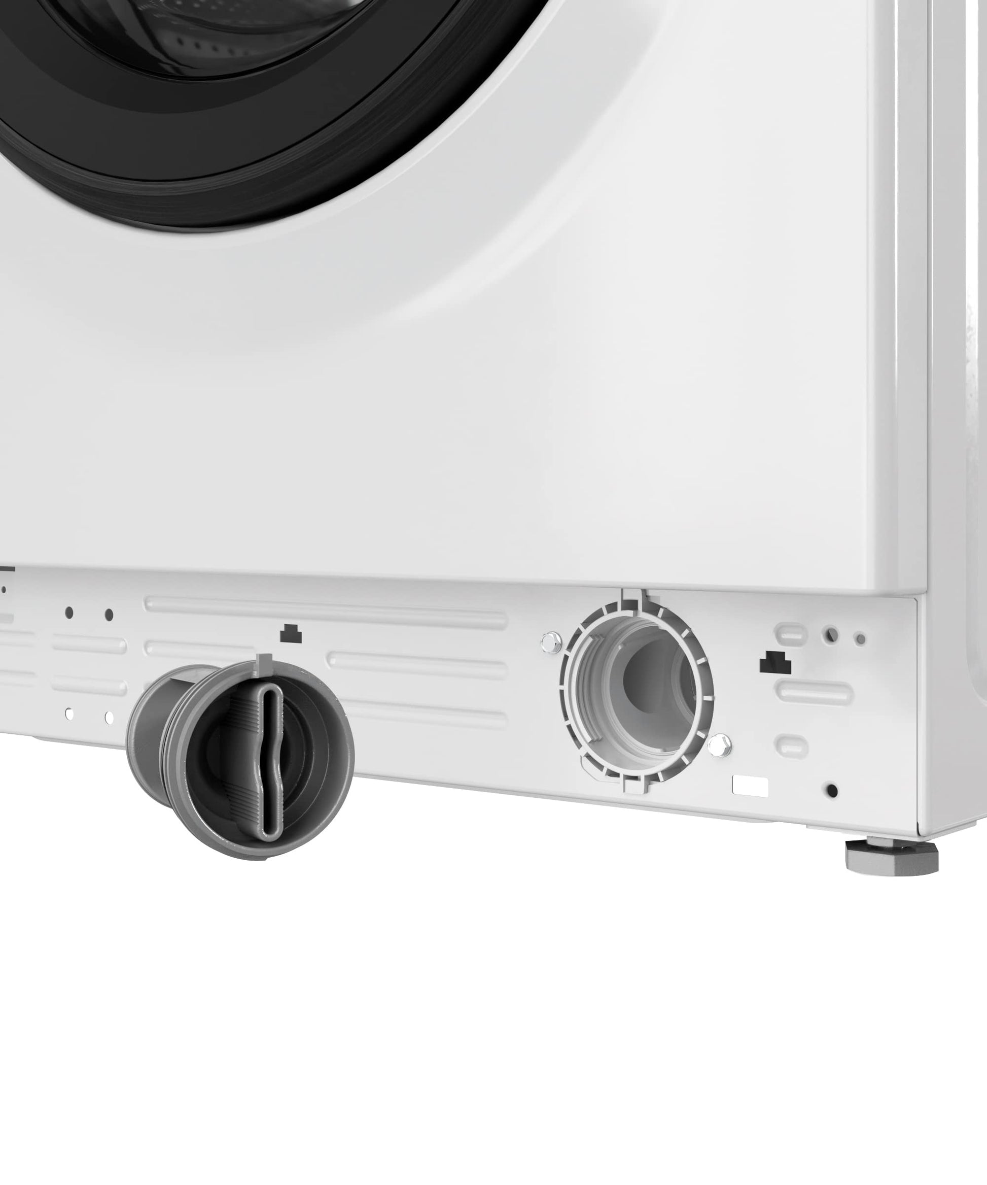 - Wichtiger Hinweis: Entfernen Sie Transportbolzen und Halterungen, bevor Sie das Gerät verwenden. Wenn die Transportbolzen nicht entfernt werden, kann es zu starken Vibrationen und Geräuschen kommen. Die Transportbolzen finden Sie auf der Rückseite der Waschmaschine