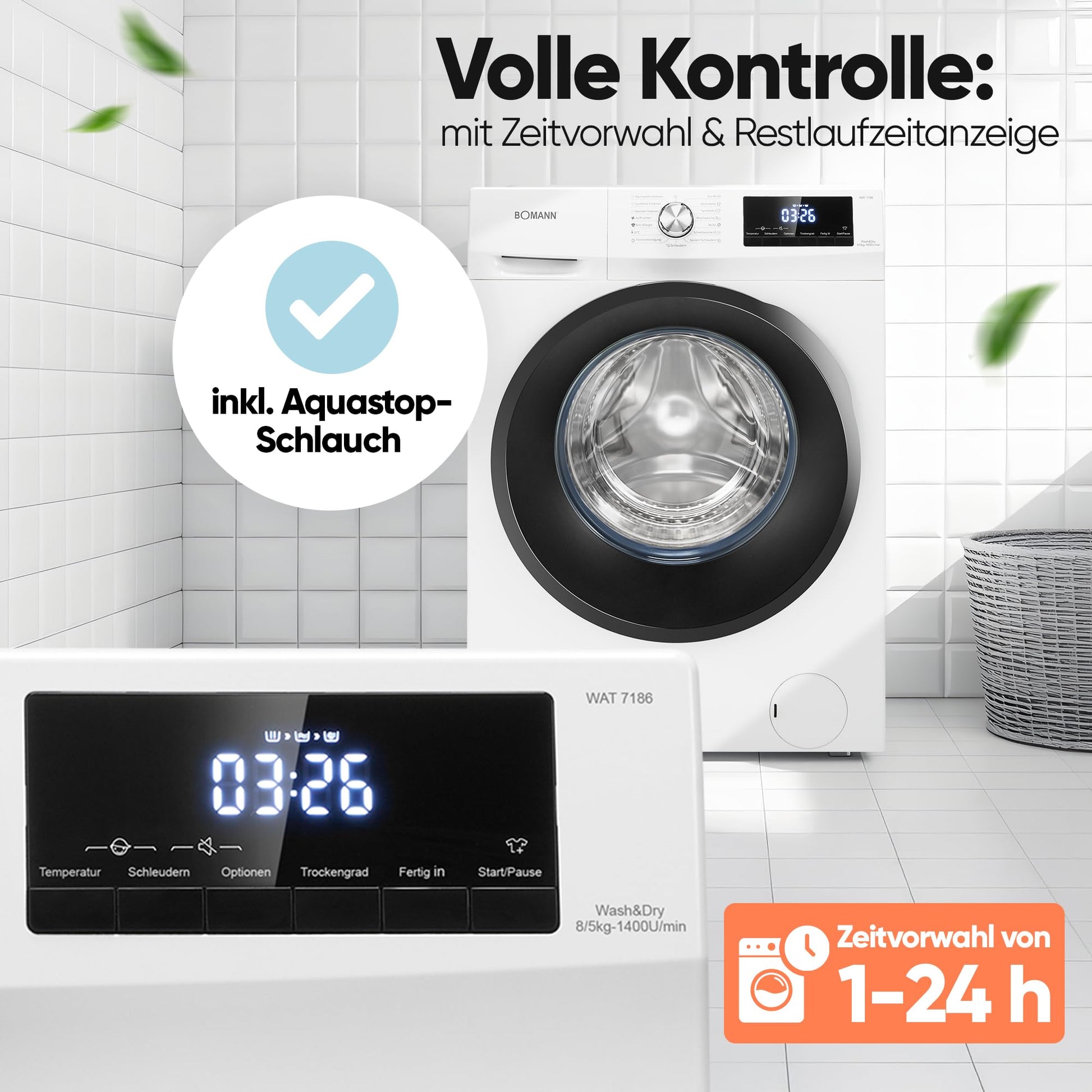 Bomann Waschtrockner WAT 7186, 8 kg Waschen und 5 kg Trocknen, 1400 U/Min, Weiß