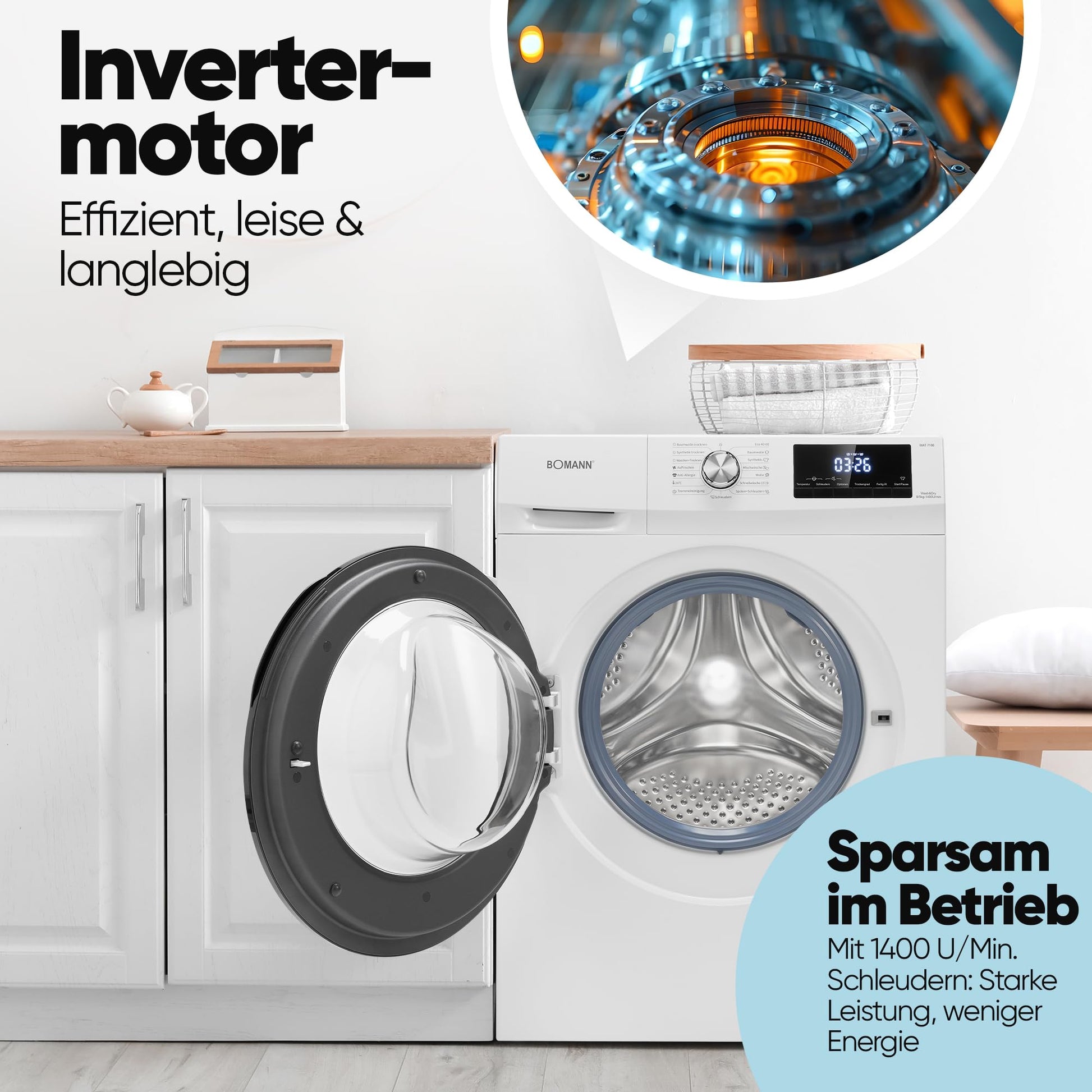 Einzelheiten: Bomann® Waschtrockner | Waschen und Trocknen in einem Durchgang | 8kg Waschen / 5kg Trocknen | Invertermotor | Dampffunktion | 1400 U/Min. | Waschmaschine mit Trockner integriert | WAT 7186 weiß